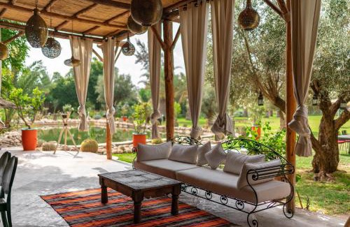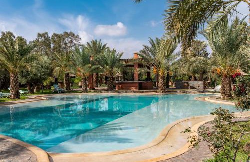 Providing a garden, Domaine Alma Marrakech features accommodations in Marrakesh. This property offers access to a terrace, free private parking, and free Wifi. The accommodation provides airport transfers, while a car rental service is also available. The air-conditioned villa consists of 10 separate bedrooms, 10 bathrooms with a hair dryer and free toiletries, and a seating area. Guests can take in the ambience of the surroundings from an outdoor dining area or keep warm by the fireplace on colder days. The villa offers bed linen, towels, and daily room service. The villa also offers an outdoor swimming pool and a solarium for guests to relax in. Sightseeing tours are available within a reachable distance. Bahia Palace is 3.5 miles from Domaine Alma Marrakech, while Boucharouite Museum is 4.3 miles away. Marrakech-Menara Airport is 5.6 miles from the property.