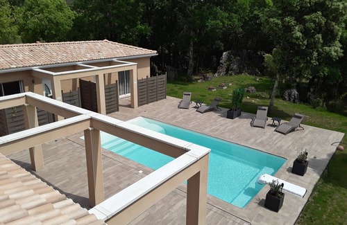 New, comfortable, air-conditioned apartment in the southern Cévennes, 25 km from Montpellier, with swimming pool.