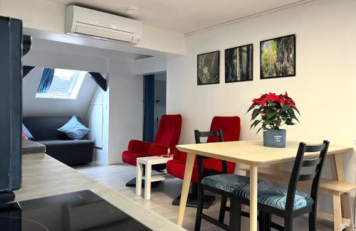 BathroomPrivate bathroom, Toilet, Shower, Hairdryer, Towels, Toilet paper, Body soapMedia & TechnologyFlat-screen TV, TVGeneralHardwood or parquet floors, Ironing facilities, Private entrance, Heating, Trash cans, Air conditioning, Smoke Alarm, IronKitchenDining table, Microwave, Kitchenware, Kitchen, Oven, Electric kettle, Refrigerator, Toaster, Wine glasses, Coffee machine, Washing machine, Stovetop, Cleaning productsLiving AreaSitting area, Sofa, Dining area, DeskViewView, Quiet street view, Garden viewBedroomChildrens' cribs, Wardrobe or closet, LinensOutdoorsOutdoor dining area, Terrace, Outdoor furnitureAccessibilityUpper floors accessible by stairs onlyBuilding CharacteristicsPrivate apartment in buildingRoom AmenitiesSofa bed, Drying rack for clothing, Fold-up bed, Socket near the bedEntertainment & Family ServicesChild safety socket coversPhysical distancingSingle-room AC for guest accommodation |