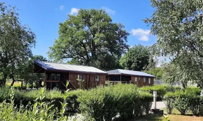 one bedroom with a double bed (160x200),one bedroom with 3 single beds (90x190),one bedroom with a bunk bed (90x190),a spacious living room with dining area and equipped kitchen (fridge, hobs, microwave, coffee maker...),a bathroom with shower and toilet,and a large covered terrace with garden furniture, perfect for relaxing and enjoying the natural environment.Bora Bora lodge combines the exoticity of an unusual accommodation with modern comfort, in a peaceful and green setting, close to the beach and our guinguette by the lake.