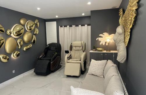 Food & DrinkTea/Coffee makerBathroomHairdryer, Towels, Shower, Private bathroom, Shared toilet, Bathtub or shower, Bathtub, Toilet, Spa tub, Bathrobe, Toilet paper, Walk-in showerMedia & TechnologyTV, Streaming service (like Netflix), Flat-screen TVGeneralAir conditioning, Trash cans, Private entrance, Smoke Alarm, Fire extinguisher, Tile/Marble floor, Soundproof, HeatingActivitiesSauna, Hot tubKitchenWashing machine, Wine glasses, Dishwasher, Stovetop, Microwave, Oven, Dining table, Kitchenware, Dryer, Coffee machine, Toaster, Electric kettle, Kitchen, RefrigeratorLiving AreaDining area, Sitting area, SofaBedroomWalk-in closet, Linens, Extra long beds (> 6.5 ft), Wardrobe or closetViewView, Garden viewOutdoorsOutdoor furniture, Barbecue, Private poolAccessibilityUpper floors accessible by stairs onlyEntertainment & Family ServicesBoard games/puzzlesPool and SpaPool cover, Plunge Pool, Heated pool, Infinity Pool, Pool with a view, Pool towelsRoom AmenitiesNon-feather pillow, Socket near the bed |