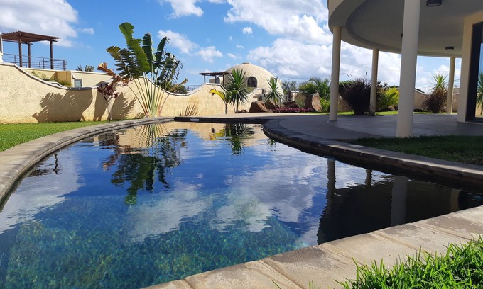 Welcome to this superb recent villa of 2017 "Dôme of Mauritus", built in an original architecture of 300m2 in the shape of a dome which lets appear peace, space and brightness thanks to its skylight located in the center