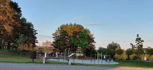 Domek letniskowy Siedemnastka offers accommodations in Gołdap, 27 miles from Hancza Lake and 29 miles from Castle Mountain. Guests can benefit from a balcony and an outdoor fireplace. Offering a terrace and lake views, the apartment includes 1 bedroom, a living room, flat-screen TV, an equipped kitchen, and 1 bathroom with a shower. Guests can take in the ambience of the surroundings from an outdoor dining area or keep warm by the fireplace on colder days. For added privacy, the accommodation features a private entrance. The apartment has a picnic area where you can spend the day outdoors. Olsztyn-Mazury Airport is 103 miles away.