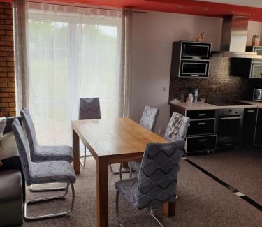 Featuring garden views, Domek Nad Mleczką in Przeworsk features accommodations, a garden, a terrace, and a shared lounge. The property is around 15 miles from Lancut Castle, 12 miles from Orsetti House Museum, and 16 miles from Castle Museum in Łańcut. There's a picnic area and guests can access free Wifi and free private parking. The accommodation comes with a fully equipped kitchen with an oven and kettle, a flat-screen TV, and a shared bathroom with bath and shower. The rooms are equipped with heating facilities. The Bernardine Basilica and Monastery is 23 miles from the apartment. Rzeszów-Jasionka Airport is 31 miles from the property.