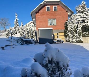 Offering a shared lounge, Domek w Gaiku offers accommodations in Limanowa. 22 miles from Nowy Wiśnicz Castle and 26 miles from Salt Mine in Bochnia, the property features a garden and barbecue facilities. There's an outdoor fireplace and guests can use free Wifi and free private parking. Featuring a terrace and mountain views, the vacation home includes 3 bedrooms, a living room, satellite flat-screen TV, an equipped kitchenette, and 2 bathrooms with a shower. Towels and bed linen are available in the vacation home. There's also a seating area and a fireplace. The vacation home has a picnic area where you can spend the day outdoors. John Paul II International Kraków–Balice Airport is 51 miles from the property.