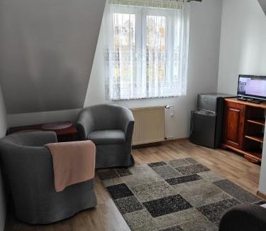 Featuring a garden, Domki i Pokoje Gościnne Nowęcin Łebska 162 offers accommodations in Nowęcin. With free private parking, the property is 2.3 miles from Leba Railway Station and 18 miles from Teutonic Castle in Lębork. The property features a children's playground and outdoor furniture. Every room is fitted with a kettle, a private bathroom, and free Wifi, while certain rooms have a terrace and some have garden views. At the apartment complex, every unit is fitted with a flat-screen TV with cable channels. The apartment has a picnic area where you can spend the day outdoors. Łeba Park is 1.8 miles from the apartment, while John Paul II Park is 1.9 miles from the property. Gdańsk Lech Wałęsa Airport is 56 miles away.
