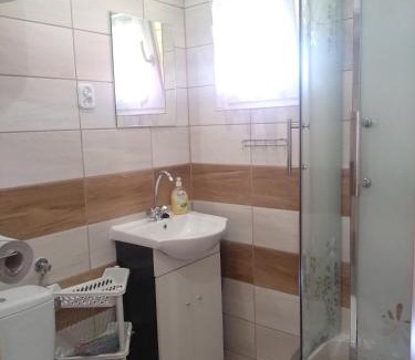 Domki pod Żukowcem provides air-conditioned accommodations in Solina. This property offers access to a balcony and free private parking. The vacation home features mountain views, a sun terrace, a 24-hour front desk, and free Wifi is available throughout the property. The units come with parquet floors and feature a fully equipped kitchen with a microwave, a dining area, a flat-screen TV with satellite channels, and a private bathroom with shower and a hair dryer. A fridge, a stovetop, and kitchenware are also available, as well as a kettle. The rooms are equipped with heating facilities. A mini-market is available at the vacation home. Guests at the vacation home will be able to enjoy activities in and around Solina, like hiking. Outdoor play equipment is also available at Domki pod Żukowcem, while guests can also relax in the garden. Skansen Sanok is 19 miles from the accommodation, while The Solina Dam is 1.7 miles from the property. Rzeszów-Jasionka Airport is 70 miles away.