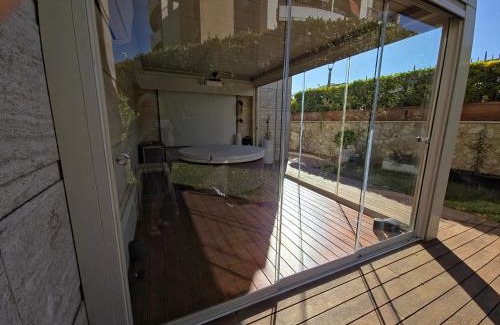 5.3 miles from Università Tor Vergata in Rome, Domus Aqua Luxury Apartment features accommodations with access to an open-air bath. The air-conditioned accommodation is 1.6 miles from Anagnina Metro Station. The accommodation provides a hot tub, free Wifi throughout the property, and an elevator. Providing a patio and garden views, the spacious apartment includes 2 bedrooms, a living room, flat-screen TV, an equipped kitchenette, and 2 bathrooms with a hot tub and a bidet. Towels and bed linen are provided in the apartment. The property has an outdoor dining area. A mini-market is available at the apartment. Guests can also relax in the garden. Ponte Lungo Metro Station is 5.3 miles from the apartment, while San Giovanni Metro Station is 5.9 miles away. Rome Ciampino Airport is 3.1 miles from the property.