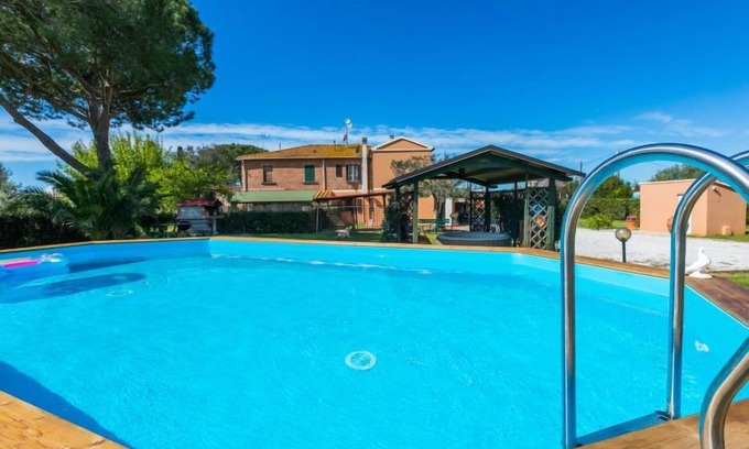 Cottage "La Casina", 2 storeys, semi-detached. 2 apartments in the property. 7 km from the centre of Cecina, 7 km from the centre of Bibbona, in a quiet, sunny position, 7 km from the sea. For shared use: property 700 m2 (fenced) with lawn and trees, swimming pool (above ground) (10 x 5 m, depth 140 - 140 cm, seasonal availability: 01.Apr. - 04.Nov.). Outdoor shower, hot tub. In the house: washing machine (extra). Parking (for 3 cars) on the premises. Shop 4 km, supermarket 5 km, restaurant 4 km, bus stop "V. Della Macchia, Aurelia" 3 km, sandy beach "Marina di Cecina" 7 km. Nearby attractions: Bolgheri 12 km, Livorno 45 km, Pisa 60 km, Lucca 80 km. Please note: car recommended. The owner does not accept any youth groups.