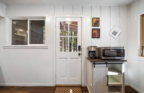 Fall in love with The Wagon Wheel Lake House at Donner Lake. The Wagon Wheel Lake House is immersed in the solitude and beauty of nature with all the amenities and comforts of modern living. This home is steps away from the shores of Donner Lake, mountain comfort food restaurants, and Truckee's best ice cream! Cozy up near the wood burning stove in the winter, and enjoy summer sunsets among the trees or on Donner Lake. Golf courses, ski resorts, and hiking trails are at your fingertips! Exceptional mountain biking and lake activities are just out your front door. Arrive at the home off Donner Pass Rd. There 4 parking spaces in the parking lot (No street parking allowed). Guests enjoy a full kitchen, spacious living and dining room area with a wood burning stove, with sleeping areas on the second floor that include two queen beds and a comfortable couch. There is a small loft that has a 2 twin trundle bed. Dining table has seats 4, with 2 barrel chairs with small coffee table to accommodate a dining space for 6. The newly remodeled deck has great forest views with patio furniture. Stay toasty warm in the winter and enjoy the relaxing Donner Lake breeze in the summer with beautiful forest views from deck. The full bathroom is on the second floor with tub/shower combo. There is a external laundry closet next to the front steps of the home with a washer and dryer.
