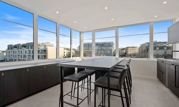 - Elegant Bedrooms: Choose from our selection of 7 spacious bedrooms, ranging from 17 to 21 square meters. Each room is a private oasis, featuring a sumptuous bed with plush duvets and pillows, ample wardrobe space, and a dedicated workspace for your professional needs. Enjoy the ease of your own coffee machine and fridge, with the serenity of room-darkening shades for a restful sleep. We're delighted to inform you that each of our rooms is designed to comfortably accommodate 1-2 people, offering flexibility for both solo travelers and couples. Should you wish to book two rooms, each for individual use, please proceed by making a second booking with the occupancy set to 1 person for each room. This ensures that your accommodation preferences are clearly understood and met with the utmost attention to detail.