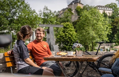 Host the regional brand EIFEL Spend your best time of the year as a holiday or short break in our hospitable house. With a wonderful view of the historic walls and the castle pond, your holiday home is in close proximity to forest, hiking and biking trails, such. B. the Eifelsteig, the Eifeler Quellenpfad, the Ahrtalradweg and the Eifel-Höhen-Route and the AhrSteig. The family-run hotel with 20, mostly newly furnished rooms offers indoor pool, sauna, gym and lift, as well as reading room and outdoor terrace. Comfortable rooms with shower / WC, telephone, hair dryer, z. T. Minibar, balcony. Breakfast room with castle view, rich breakfast buffet. Discover EIFEL specialties for the heart and palate, actions with Eifel lamb, Döppekoche, Tarte Flambée and finally a schnapps from Eifeler Streuobstwiesen. Hiking packages with packed lunch, hiking suggestions and utensils. Parking, garage. Also suitable for groups.