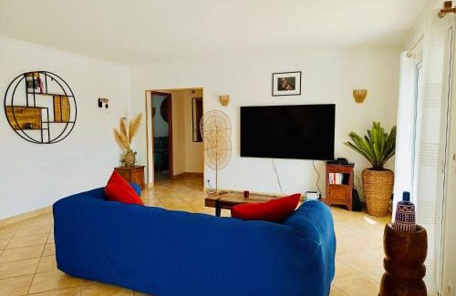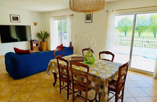 Douceur des vignes offers accommodations in Argeliers, 17 miles from Fonserannes Lock and 17 miles from Saint-Nazaire Cathedral. This property offers access to a terrace and free private parking. Beziers Arena is 18 miles away and Abbaye de Fontfroide is 21 miles from the villa. The air-conditioned villa consists of 3 bedrooms, a living room, a fully equipped kitchen with a dishwasher and a coffee machine, and 2 bathrooms with a shower. Towels and bed linen are featured in the villa. The property has an outdoor dining area. Guests can enjoy the outdoor swimming pool and garden at the villa. Mediterranee Stadium is 23 miles from Douceur des vignes, while Reserve Africaine de Sigean is 23 miles away. Beziers Cap d'Agde Airport is 28 miles from the property.
