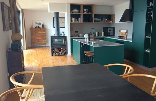 The spacious holiday home is fitted with 3 bedrooms, 3 bathrooms, bed linen, towels, a flat-screen TV with satellite channels, a dining area, a fully equipped kitchen, and a terrace with mountain views. A private entrance leads guests into the holiday home, where they can enjoy some wine or champagne and fruits. There is also a seating area and a fireplace.