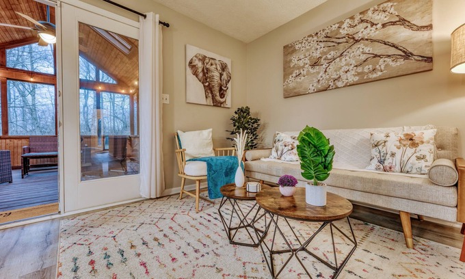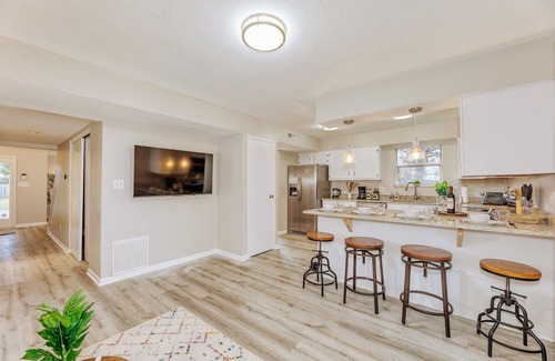 Spacious 2,000 ft2 mid-century modern home equipped with smart home technology, located in a residential neighborhood. Our home was designed with family & group getaways in mind. You will enjoy the comfort of a large, fully updated home with space to spread out, a screened-in porch along with a fully fenced backyard which kids & dogs would love, and plenty of parking!