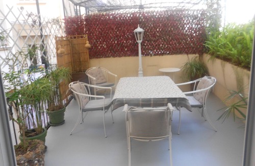 80 m2 apartment downtown (on the 1st floor), comfortable, two double bedded rooms (Dim 140/160), living / dining room, fully equipped kitchen, bathroom (with shower) and separate toilet, large terrace with garden and private parking.