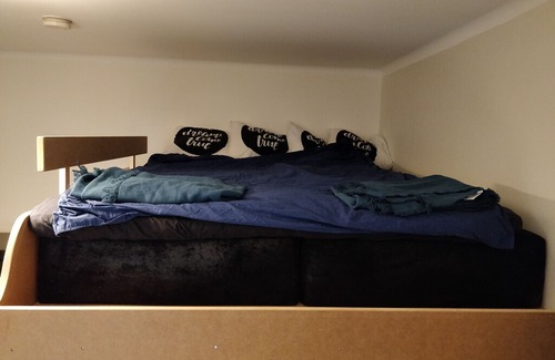 It is relatively newly renovated with new furniture, total sun-blocking curtains as well a bed loft with a bed whose width is 160 cm.