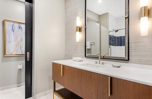 The suite includes a bathroom with modern amenities and premium toiletries.
