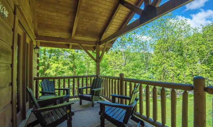 In the High Country, however, no one wants to stay inside for long. The Downtown Cabin provides a lovely park-like setting, with a wide lawn, surrounded by woods and caressed by the cool mountain breeze. Enjoy privacy and serenity from your wide covered deck – perfect for enjoying bird song and a beverage, or conversation with your favorite people. There's a charcoal grill for dining al fresco. You'll also love star-gazing at night from your luxury hot tub!