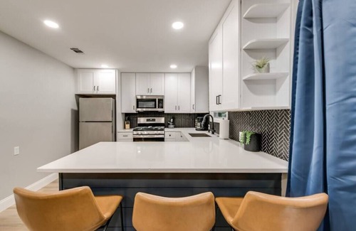 Downtown Carrollton home with 3 Bedrooms and 2 full bathroom rooms. Convenient to both downtown and everything along I-35. 15 minutes from both airports. House has been fully renovated in 2022 and modernized. Kitchen has brand new appliances and has everything you would need to make a meal. Main bedroom features a king bed with work space while other rooms features queen beds. Smart TVS in all bedrooms. Enjoy lounging on our covered patio by the fire-pit in the large treed backyard.