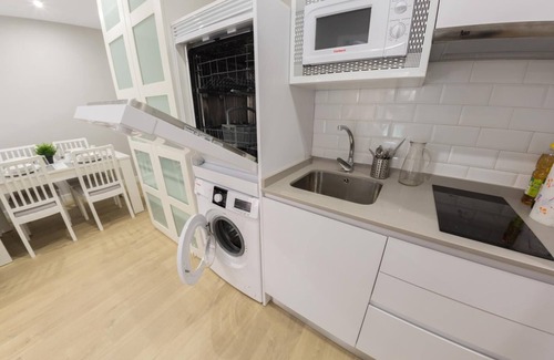 Just renewed luxurious apartment. With a double bed with linen, kitchen equipped with fridge and freezer, microwave, dishwasher, washing machine, Italian coffee maker, and kitchenware. Option for up to two extra people in a wide and confortable sleeper sofa.