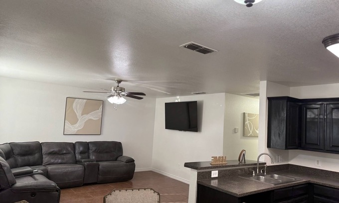 Downtown Family Friendly 3 bed Home with large patio is located in Odessa. Downtown Family Friendly 3 bed Home with large patio provides accommodation, featuring Air Conditioner, TV, Security/Safety, among other amenities. This House features Air Conditioner, TV, Security/Safety, to make your stay a comfortable one.