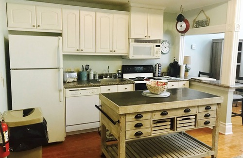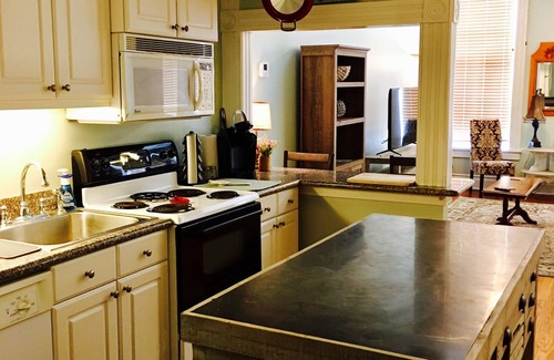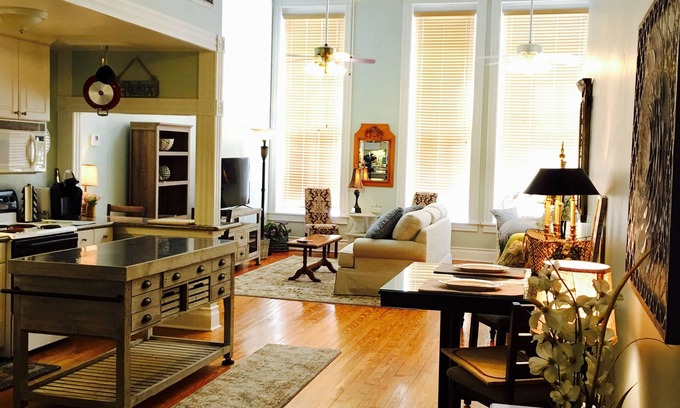 Our spacious open loft can accommodate up to four guests, all of whom will enjoy a peaceful sleep in this quiet downtown neighborhood. Contemporary amenities like granite counters and comfortable living meet the vintage charms of yesterday. This loft includes a full kitchen and laundry (washer/dryer included) amenities as well as complimentary Wi-Fi and Netflix TV.