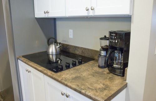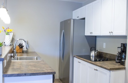 The front door is equipped with a keyless entry. Guests are given a unique code that acts as their key during their stay. Very convenient!
