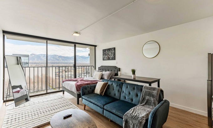 The most convenient place to stay in all of Salt Lake City. Perfectly located in the heart of downtown, this stylish, cozy remodeled hotel turned apartment building carries the charm of a home along with the added amenities of a hotel. Including a full gym, fire pit area for relaxation, pool table, multiple conference rooms/areas to get work done, and concrete sound proof walls for noise comfortability. As a stand alone building on its block with completely unobstructed views to the mountains this large studio is perfect for the get-away, ski vacation, or business trip. The best of SLC is all within a few blocks of walking: local restaurants, pubs, a comedy club, movie theaters, malls, the Salt Palace Convention Center, Delta Center, Temple Square, Family History Center, 4 performing arts theaters, etc. Numerous hiking trails and stunning canyons are minutes away. Seven world-class ski resorts are 30-50 minutes away. Wake up to unobstructed mountain views on our Juliette Balcony. Great for a couples retreat, business travelers, visitors looking to get a more in depth Salt Lake City experience.