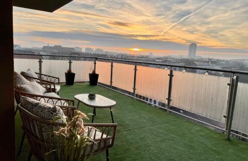 1.2 miles from Hungarian National Museum in the center of Budapest, Downtown Penthouse Budapest offers accommodations with access to a hot tub. With city views, this accommodation provides a terrace. Free Wifi is available, and private parking can be arranged at an extra charge. The air-conditioned apartment consists of 1 bedroom, a living room, a fully equipped kitchen with a dishwasher and a coffee machine, and 1 bathroom with a shower and a hair dryer. Towels and bed linen are offered in the apartment. The property has an outdoor dining area. Popular points of interest near the apartment include Blaha Lujza Square, Keleti Pályaudvar Metro Station, and Keleti Train Station. Budapest Ferenc Liszt International Airport is 6.8 miles from the property.