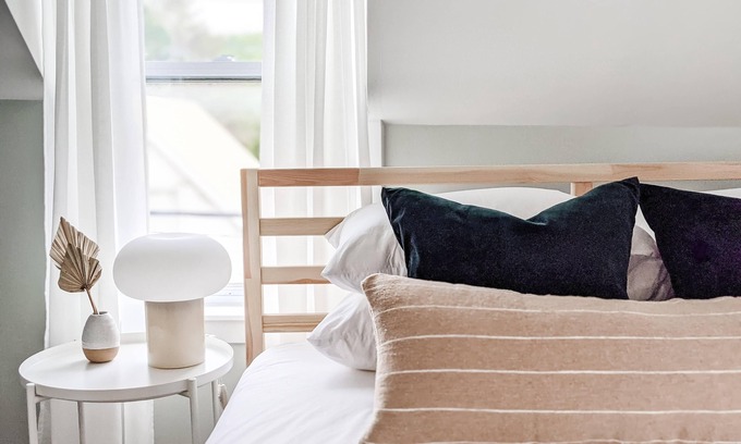 The kitchen is fully stocked with coffee, tea, spices. We love to cook and have included ceramic dishes handmade in Portugal from Fable and knives from Kilne. Please feel free to use them all, they are provided for your enjoyment. The living room hosts a flat-screen TV with Netflix. The two bedrooms have luxurious Helix Sleep mattresses and Brooklinen bedding.
