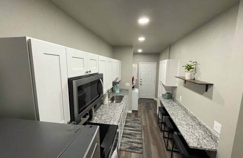 Discover this wonderful 1-bedroom (queen size bed) 1 bath gem next to Downtown San Antonio. It has recently undergone a complete remodel with all new furnishings situated just minutes from downtown San Antonio with private off street covered parking. This terrific downstairs apartment features a cozy living room with a fold out couch that turns into a large twin bed. Guests can enjoy amenities like WiFi/internet access, separate air conditioning and heating, and a private washing machine and dryer. All new appliances are part of the updated efficiency kitchen with a built in breakfast bar. Everything you need for a comfortable stay in San Antonio at an affordable price. We look forward to welcoming you to our place.