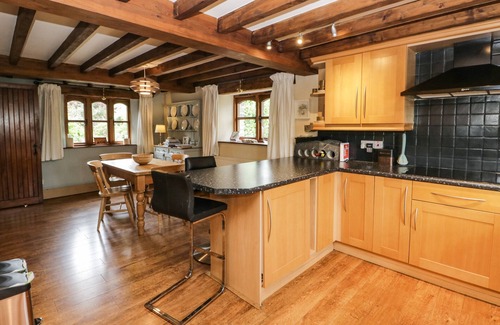 Kitchen with elec oven, ceramic hob, microwave, fridge and freezer. Living/dining room with Smart TV and woodburner. Bedrooms consist of 1 x Superking with en-suite double shower, basin and WC , 1 x double, 1 x twin and 1 x double. Another 1 x double room on ground floor. First floor family bathroom with large corner bath with shower over, plus a separate shower cubicle. Two cloakrooms with WC and basin. Garden patio with seating and hot tub, off-road parking for 3 cars. Within 3.7 miles there is a shop and pub. WiFi, fuel, power, bed linen, towels are all inc. Hot tub maintained by a professional hot tub company including water changeover and chemical checks between each booking. The water shade may looks unusual, this can be due to natural iron in the borehole supply. The owner confirms that the borehole supply itself is checked as per PWS requirements. 1 x pet, please contact Sykes to add after you have made your booking, for extra pets, please check in advance.
