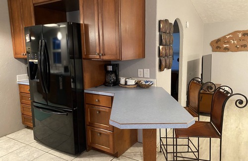 Nicely outfitted kitchen with tons of countertop space or BBQ your favorites on the Weber grill a couple steps right outside the kitchen door on the open deck with incredible views to enjoy while you cook.