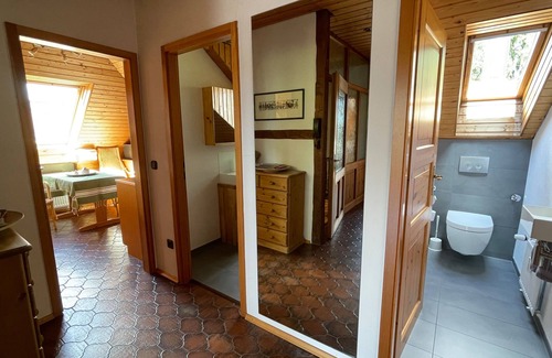 Built around 1900, the apartment "Roos" is located on the edge of the music district of Constance on Lake Constance and is housed in the spacious attic of the former "Villa Melena". The apartment in Constance on Lake Constance with a cute roof terrace to the south and views towards the Swiss Alps has two rooms and 4 beds, a well-equipped kitchen, bathroom and toilet. The apartment is bright and embedded in a "green" environment. It is hardly 300m to Lake Constance. Shops, sports, thermal bath, weekly market, center, bakery, forest, Seestrasse and much more in the immediate vicinity of the apartment. Parking is available in front of the house in the street and the nearest bus stop is barely 100m.