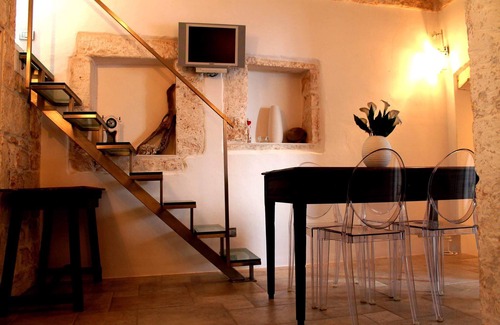 completely renovated detached house in the style of the White City, with ceilings with stone arches and finished in detail, Dream Home Ostuni will give you pleasant moments of leisure and relaxation. Immersed in the heart of the historic center, just 100 meters from Piazza Sant'Oronzo, the main enchanting Ostuni, the property is an ideal point at which to stay. Quiet, elegant, with masonry finishes created specifically for the apartment. Dream Home Ostuni is the ideal accommodation for families, couples or business trips. We wanted to create a contrast between the style of the city, through restructuring with exposed stone and the modern, impactful inputting details, such as resistant glass stairs, and glass-fronted kitchen.