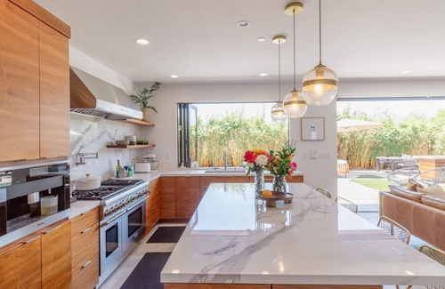 This home features a recently renovated and contemporary layout, both interior and exterior, with exposed ipe and santa barbara finish stucco as well as all the contemporary and modern furnishings inside for you to help you 'get away from it all'. This home is fully loaded all the way down to the in cabinet Miele coffee machine. With magnificent views of the Pacific Ocean from the master bedroom, you are just a mile (+/-) away from the best beaches San Diego has to offer ... Cardiff Reef, Georges, Swamis and Pipes (to name just a few)... This home has a full kitchen with all the amenities, quartz countertops, stainless steel appliances (Thermador refrigerator, stove, oven, dishwasher) gas cooktop, and even a stainless steel pot filler. The cupboards are stocked with the vacation rental ready dishware, stemware, and glassware. Additionally all necessary cooking and eating utensils and dishware are provided.