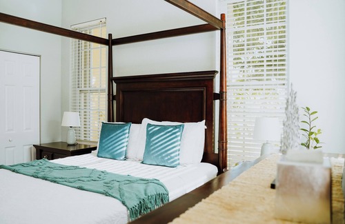 Imagine waking up to the gentle whispers of a peaceful lake, where azure waters mirror the clear Caribbean skies. Our intimate sanctuary boasts a sparkling pool, a soothing hot tub, and a sizzling BBQ area, all harmonizing to create the ultimate getaway.