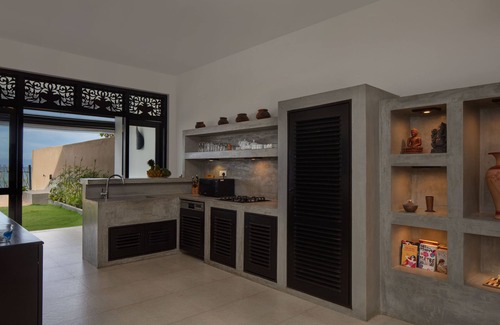 Enjoy the outdoor space. The vast beachfront garden boasts picturesque beach and sea views from sunrise to sunset. Have a drink while gazing to the beautiful beach at the palm trenched shaded hut. Take a dip in the stunning 11-meter swimming pool or enjoy the view on comfortable sunbeds. Finish up with a relaxing wellness shower.