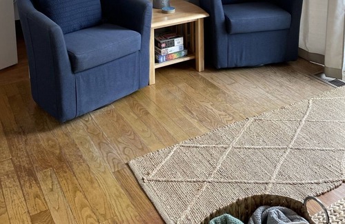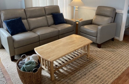 The open kitchen and living area are ideal for family gatherings. Or, spread out on the brand new wrap around deck. There is a picnic table on the deck to allow for outdoor dining and several chairs for lounging with a good book. On the ground level there is an outdoor shower to rinse off the day. With one-level living, there are 4 bedrooms and 2 bathrooms, with each set of bedrooms sharing a jack-n-jill bathroom. While the cottage easily sleeps 8, it is ideally suited to two small families (4 adults and 4 children). There is just over 1,000 square feet of living space, so it may be a bit 'close' for 8 adults.