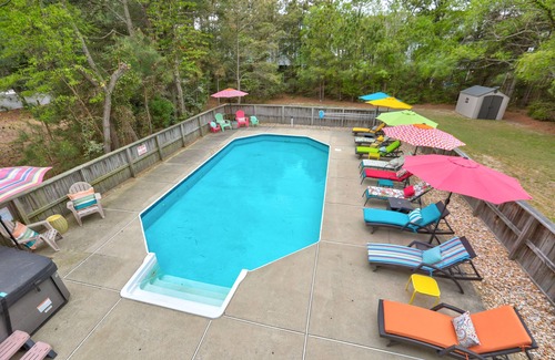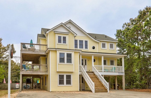 Find yourself enjoying an unforgettable Outer Banks vacation with loved ones in no time when you book this wonderful seven-bedroom home! Perched in the heart of Corolla, you will have easy access to coastal attractions, white sand, and warm water. When you find yourself at home base, everyone will love starting each day with a fresh cup of coffee on the furnished deck until the temperature rises and the sparkling pool becomes the hub for fun in the sun. Plus, the eight-person hot tub will be just the place to finish off each day under the pinks and purples of the sunset. Inside, the fun won't stop, as this layout this absolutely ideal for larger groups and families. Split into three floors, Shore Thing boasts a full kitchen, an accommodating dining table, and an open living area on the top floor that will be ideal for gathering with everyone for meals or movie nights. Plus, the primary suite also calls this third-level home with an ensuite bath. Head down to the second level and you will find four more bedrooms including another primary suite with an attached bath complete with a jetted tub. Two of these bedrooms also have access to the mid-level wraparound deck! The kiddos and young at heart will love hanging out downstairs because two bunk rooms, a wet bar, a flatscreen TV, and a pool table await for unlimited entertainment and a bit of friendly competition. With so much fun just waiting to be had, what are you waiting for? Nearby Services and Dining Options