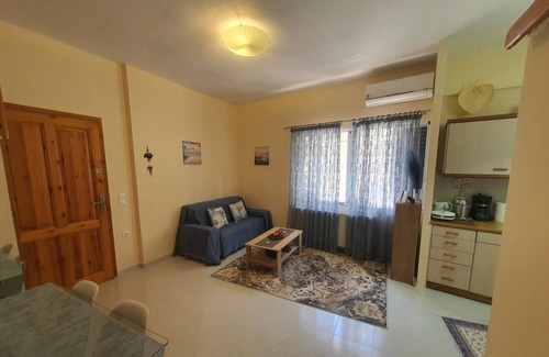 Τhe apartment is new to our list of accommodations as well as to the list of tourist accommodations in general. It is fully renovated with modern elements to feel like your home. There is a bedroom with a double bed and air conditioning, a bathroom with a bathtub and a washing machine. In the living room there is a sofa which we can make into a single bed, an A/C, a HD TV , a fully equipped kitchen with all the necessary utensils and a kitchen table. The accommodation provides free linen, bath towels, free Wi-Fi access, an iron with ironing board, a clothes rack and a hairdryer.