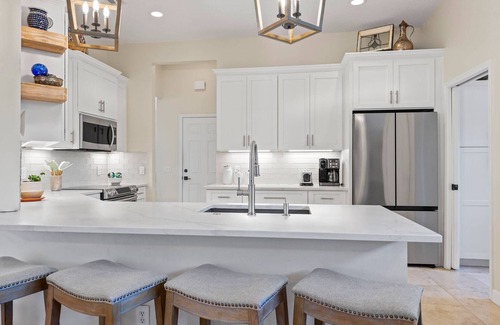 This stylish Destin retreat offers the perfect blend of comfort, fun, and luxury. Every stay includes a 6-passenger golf cart, making it easy to zip over to the sugar-white sands, explore top restaurants, or enjoy the nearby community center with its sparkling pool, hot tub, tennis courts, gym, and playground. Back at the house, you’ll love relaxing on the breezy screened porch, unwinding in the spa-inspired primary bath, and cooking in the gorgeous, fully stocked kitchen complete with high-end dishes and abundant cooking tools. Thoughtful extras like board games, puzzles, and outdoor toys make it easy to keep both kids and adults entertained when you’re not at the beach. With its light, airy décor and coastal touches throughout, the home instantly puts you in vacation mode. Whether you’re gathering with family, escaping for a romantic getaway, or enjoying a trip with friends, this beachy and well-appointed retreat is designed to make every moment feel like a dream vacation.