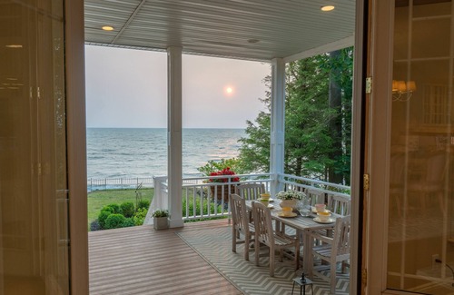 Drenched in Lake Michigan Sunsets, Weque South is ready to welcome up to 12 guests through its magnificent doors. The three astounding levels of this home each have something special: A garden view room leading right out under the arbors, main level excellence with indoor/outdoor living, and upper-level bedrooms towering over Lake Michigan's serene beauty. Come see what Weque has in store for you!
