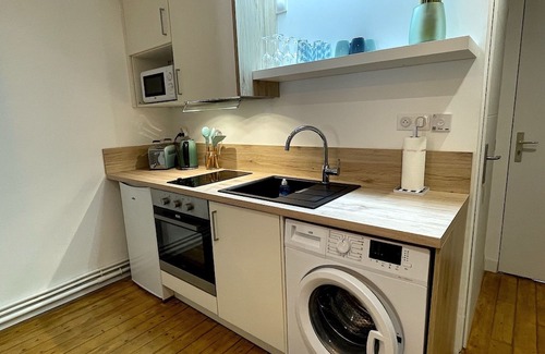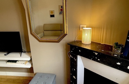 Near the entrance, you will find a pretty bathroom with a sink. The kitchen is well-equipped. A real oven, toaster, kettle, Nespresso coffee, microwave, small fridge. A washing machine is also available, as well as a drying rack and ironing equipment. The living room includes a comfortable 140 x 200 cm convertible sofa. It is unfolded in just a few seconds (just pull the handle between the vertical cushions). You will find clean pillows and duvets in the room. A 40-inch smart television is also available. You will be able to connect to Netflix, Prime, etc. with your own account. The curtains will allow you to rest in the morning if necessary. You have a view of the main street of Dreux and the Royal Hill.