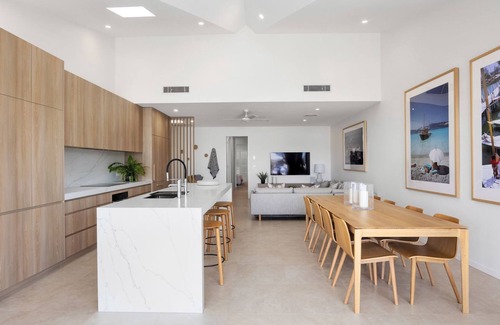 The living area is designed for total relaxation, featuring sumptuous lounges perfect for unwinding after a day of exploring Noosa’s natural beauty. From the living room, step out onto the balcony and take in the serene river views—a perfect spot for your morning coffee or evening glass of wine.