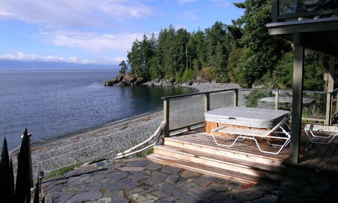 What makes an ideal west coast vacation home is a place on the beach for a large or a small family, with indoor and outdoor fireplaces, and a hot tub with view. Driftwood Beach House has all of this. In addition, this property is a short drive from some great area attractions. The house is on the scenic Sooke to Port Renfrew Cowichan Circle route (the Pacific Marine Circle Route). Botanical Beach is at Port Renfrew and in the other direction there is Butchart Gardens. Victoria is a great place to visit with its quaint waterfront downtown, and Canada's oldest China Town.