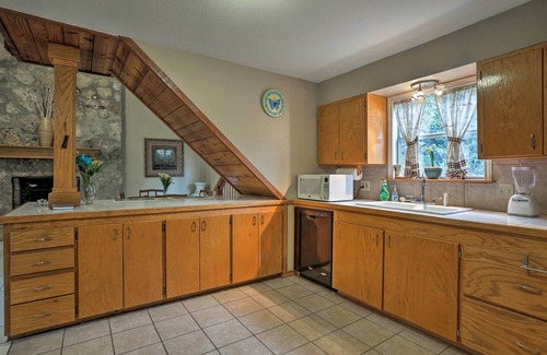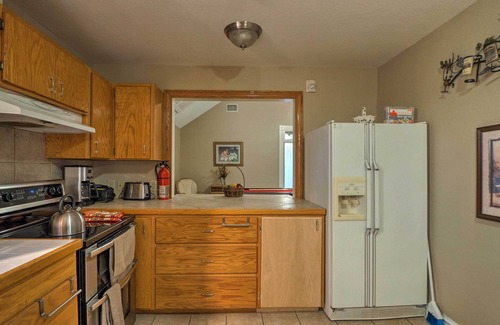 When you start to get hungry, head inside to prepare a hearty lunch for everyone in the fully equipped kitchen, outfitted with a 4-burner electric stovetop, tile backsplash, wooden cabinetry, and plenty of room for extra cooks in the kitchen. Enjoy your meal at the 4-person dining table adjacent to the kitchen or eat it on the way to your daily adventure.