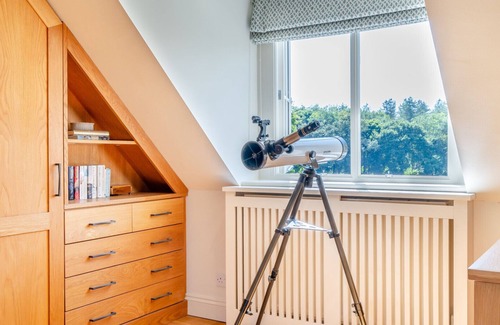 Outside, you can relax on the sunbeds or on the terrace chairs and table by both the pool or the conservatory. Take a refreshing dip in the 17-metre heated pool, and enjoy a BBQ as the sun sets. Extend the day with firepit marshmallows. The dog friendly fenced garden offers croquet, cricket, a trampoline, spike ball, crazy catch, a swing, slide and tree house.