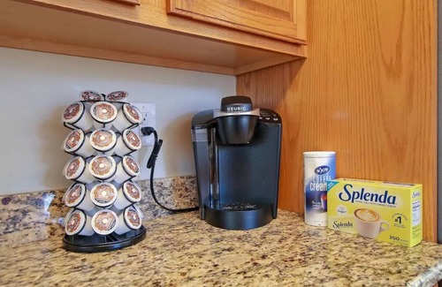 The updated galley-style kitchen offers granite countertops, stainless steel appliances, and plenty of counter space for food and drink prep. Get your morning started off right with a Keurig and complimentary coffee pods. Or enjoy a family dinner in the Crock Pot Slow Cooker. A workstation provides for checking email or a quick check-in with the office.
